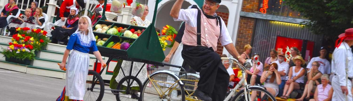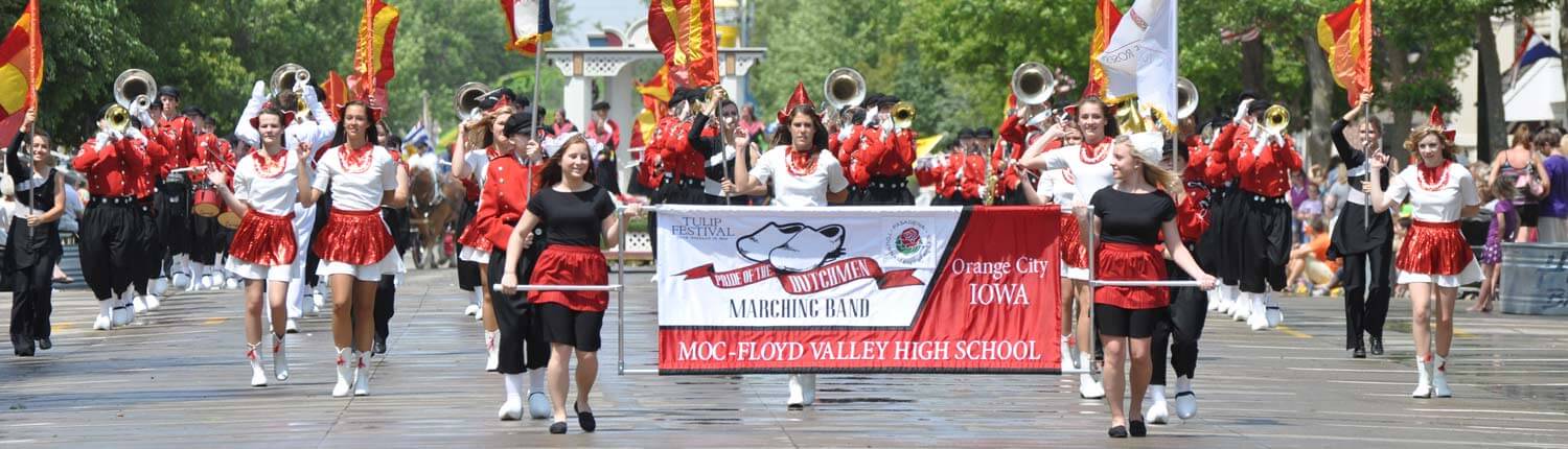 The Volksparade is the Tulip Festival’s main event. The twice-daily parade draws thousands of spectators and is filled with sound and color. Several of the festival floats are Dutch-themed with riders wearing authentic Dutch Klederdracht.We are always excited to welcome area marching bands and parade entries to each parade.
